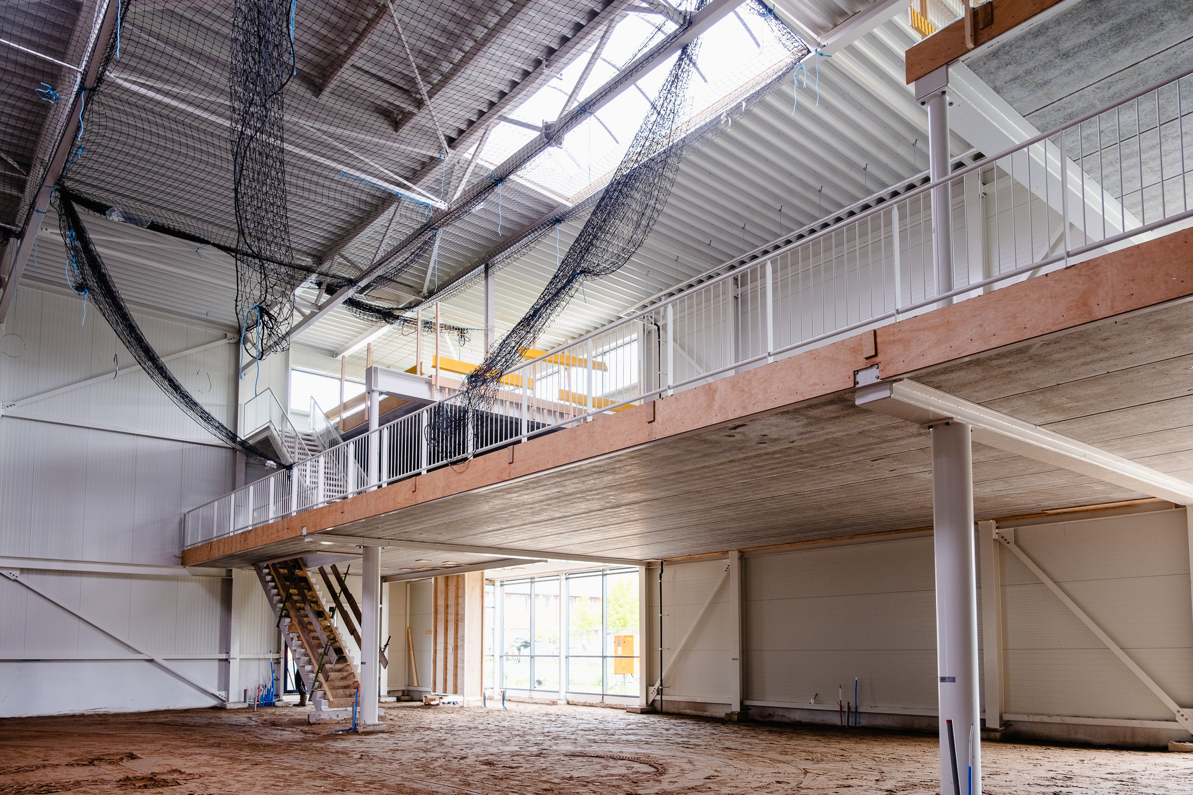 Valmatten: Begin juni staan alle wanden op hun plaats. Vanaf 10 juni worden de valmatten van Flipp geplaatst.